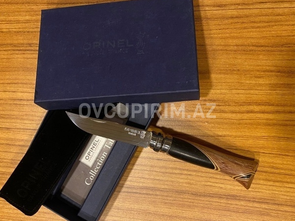 Opinel N°08 Chaperon Made in France Paslanmaz polad Metal Sandvik 12C27 Tiyə uzunlugu - 7cm Sapın uzunlugu - 9.29cm Tutacaq usta Bruno Şaperon tərəfindən icad edilmiş kakma üsulu ilə hazırlanır. Dörd müxtəlif növ ağac yığılır (qara ağac, qızılgül, bənövşə, bokot, kokobolo, qızılgül, zebrali, şimşək, amaranth ... ). Orijinal və unikal nəticə üçün ziddiyyətli çalarları olan müstəsna ağac. Sapı və tiyəsi əl ilə cilalanır.